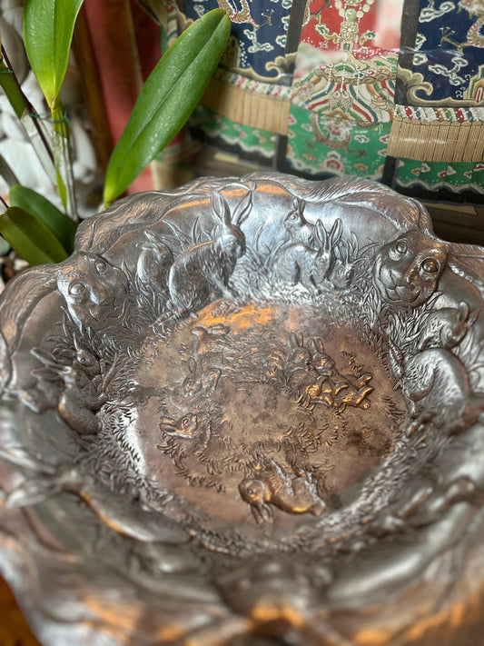 Arthur Court 14" Salad Serving Bowl Bunnies (Aluminum Hollowware)
